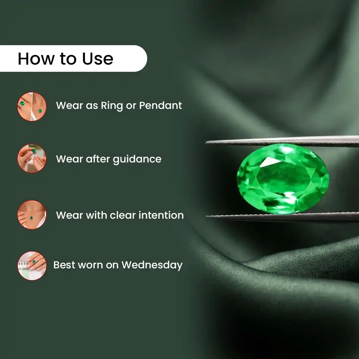 Gemstone of Budh Grah that enhances intellect, communication, and business skills while correcting Mercury imbalance.