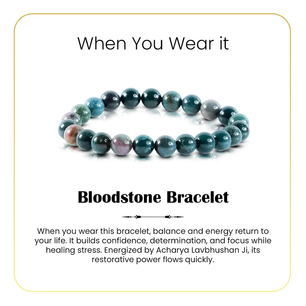 bloodstone bracelet, natural bloodstone gemstone bracelet, courage strength stone jewelry, grounding crystal bracelet, emotional balance gemstone, daily wear spiritual bracelet, protective stone bracelet, bracelet by acharya lavbhushan, how to wear