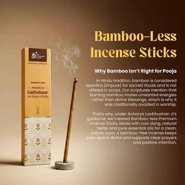 The Premium Gulbahaar Incense Sticks are crafted with a unique blend of coconut powder and sacred cow dung for a pure, traditional incense experience.