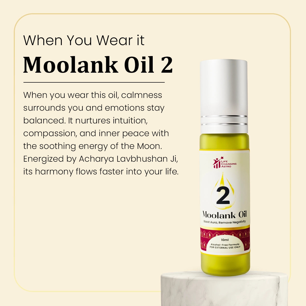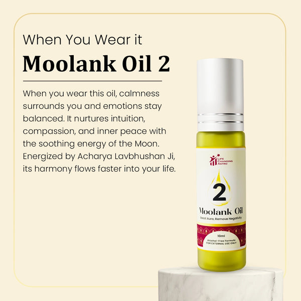 The Moolank 2 Oil is crafted to promote emotional balance, intuition, and harmony, resonating with the Moon’s (Chandra’s) calming energy. Ideal for those born on 2, 11, 20, 29, it nurtures inner peace and strengthens sensitivity and compassion.