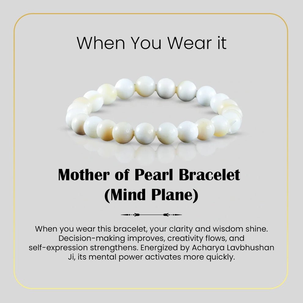 "The Natural Mother of Pearl Bracelet is crafted using carefully selected natural Mother Of Pearl crystal beads, known for their unique energetic properties. Each bead measures approximately 8 mm, making the bracelet comfortable for daily wear while maintaining strong energetic presence. This bracelet is designed for those seeking balance, emotional clarity, and steady personal growth. The smooth, polished Mother Of Pearl beads sit gently on the skin, making it suitable for long hours of wear. Every piece is quality-checked to ensure authenticity, durability, and consistency in bead size."