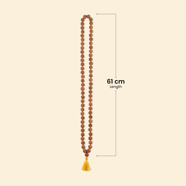 Sacred Rudraksha Type: This mala is crafted with authentic 5 Mukhi Rudraksha beads, known for their calming, balancing energy and suitability for daily spiritual practice. Spiritual Significance: The 5 Mukhi Rudraksha represents Lord Kalagni Rudra (a form of Lord Shiva) and is traditionally revered for supporting mental peace, inner stability, and spiritual discipline. Complete Japa Count: Contains 108, making it ideal for mantra chanting, japa, and meditation practices in a complete cycle. Length - 61 cm