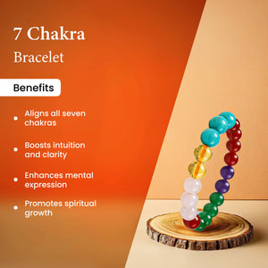 The 7 Chakra Bracelet aligns the Thought Plane (6-7-2), enhancing intuition, expression, and mental clarity while balancing your chakras for spiritual growth.