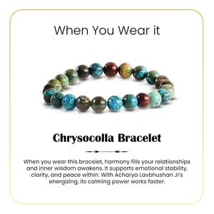 The Chrysocolla Bracelet is a stone of calm and wisdom, promoting emotional healing and balance. Known for its ability to aid in communication and self-expression, this bracelet enhances your inner peace and intuition. It helps to relieve stress and anxiety, making it ideal for those seeking emotional stability and personal growth. Wear it to foster harmonious relationships and strengthen your heart chakra.