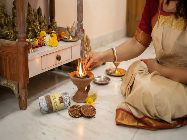 Prepared traditionally for clean, steady ritual fire. Suitable for havan and yagna. Burns evenly when used correctly. Intended for spiritual use only. Best with proper ventilation.