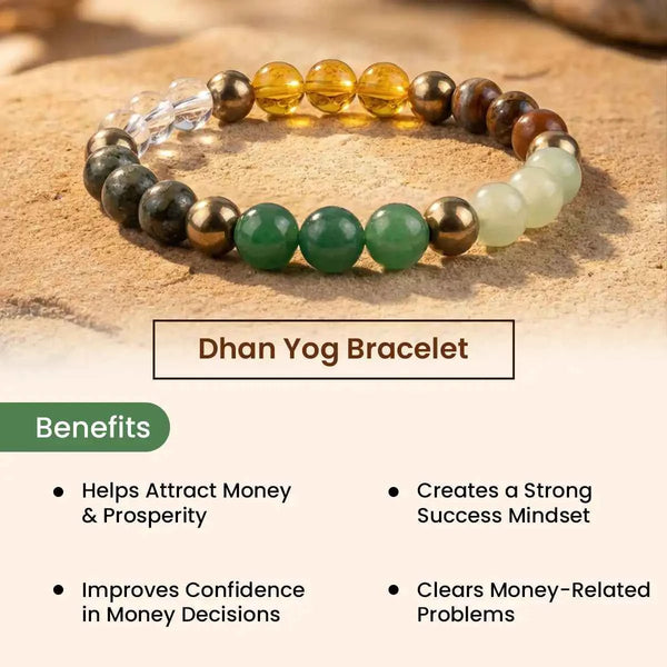 A Dhan Yog Bracelet is an astrology wealth bracelet made with natural gemstones to support financial growth, prosperity, and success.