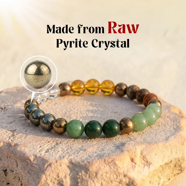 The Dhan Yog Bracelet is made using a carefully selected blend of natural Tiger Eye, Pyrite, Citrine, Quartz, Green Aventurine, and Hematite crystal beads. Each bead measures approximately 8 mm, offering comfort for daily wear along with strong energetic presence. This combination is traditionally worn to support financial clarity, disciplined action, and grounded decision-making. Every bracelet is quality-checked for authenticity, bead consistency, and durability.