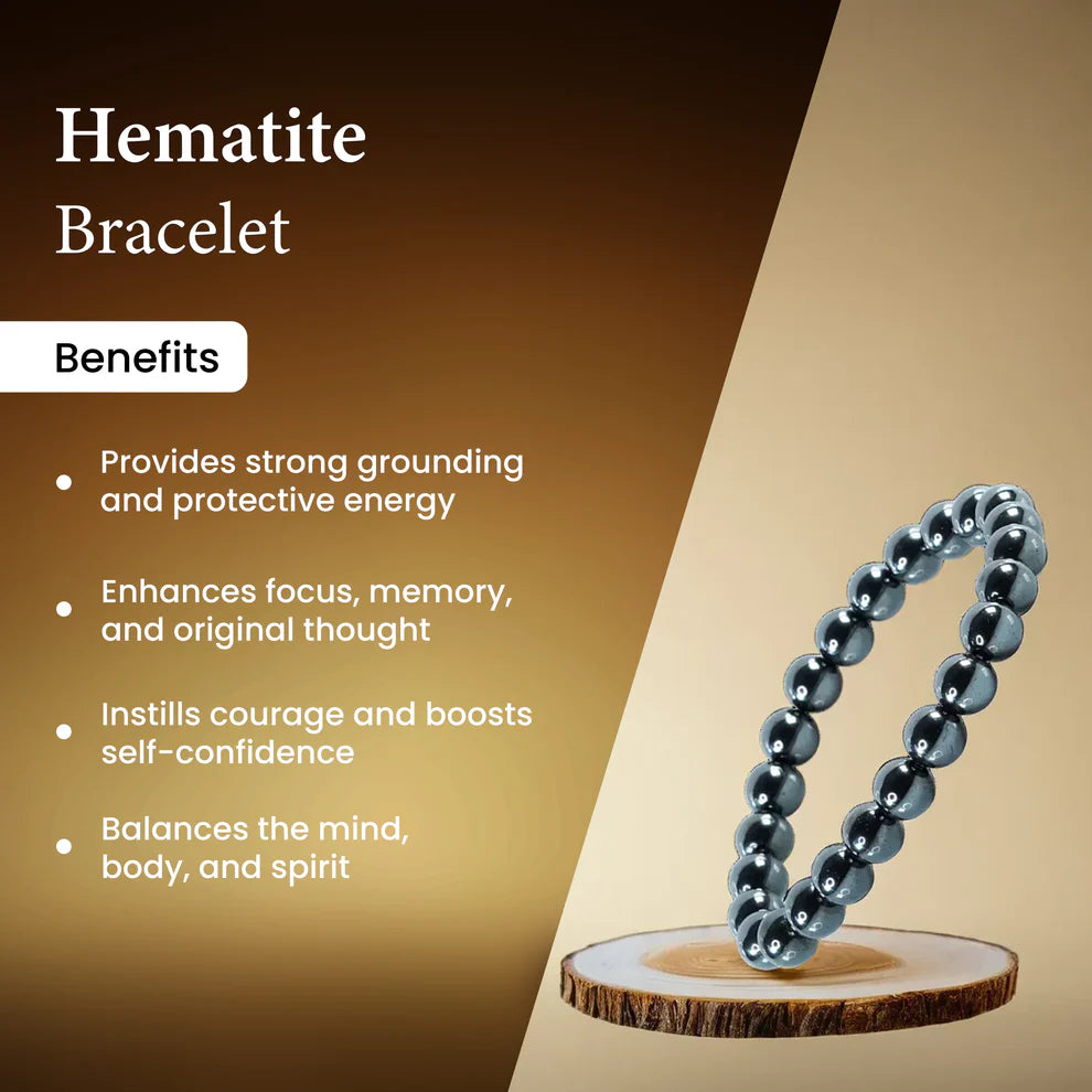 The Natural Hematite Bracelet is crafted using carefully selected natural Hematite crystal beads, known for their unique energetic properties. Each bead measures approximately 8 mm, making the bracelet comfortable for daily wear while maintaining strong energetic presence. This bracelet is designed for those seeking balance, emotional clarity, and steady personal growth. The smooth, polished Hematite beads sit gently on the skin, making it suitable for long hours of wear. Every piece is quality-checked to ensure authenticity, durability, and consistency in bead size.