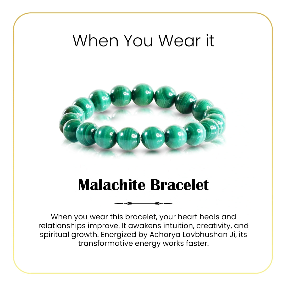 The Malachite Bracelet symbolizes transformation, protection, and emotional strength. It absorbs negativity and supports heart chakra healing.