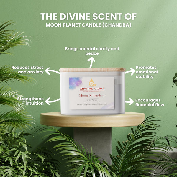The Moon Planet Candle combines the soothing essence of Jasmine and Clary Sage to calm the mind and nurture emotional stability. The Moon governs emotions, intuition, and financial flow. Burning it in the North-West direction balances your inner world, reduces stress, and supports smooth movement of wealth. Perfect for those navigating emotional challenges, unstable finances, or seeking harmony in relationships.