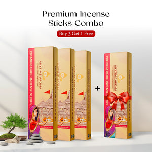 This elegant combo includes Rose, Oudh, and Fantasia premium incense sticks. Perfect for creating a soothing, aromatic atmosphere ideal for meditation, prayer, and relaxation.