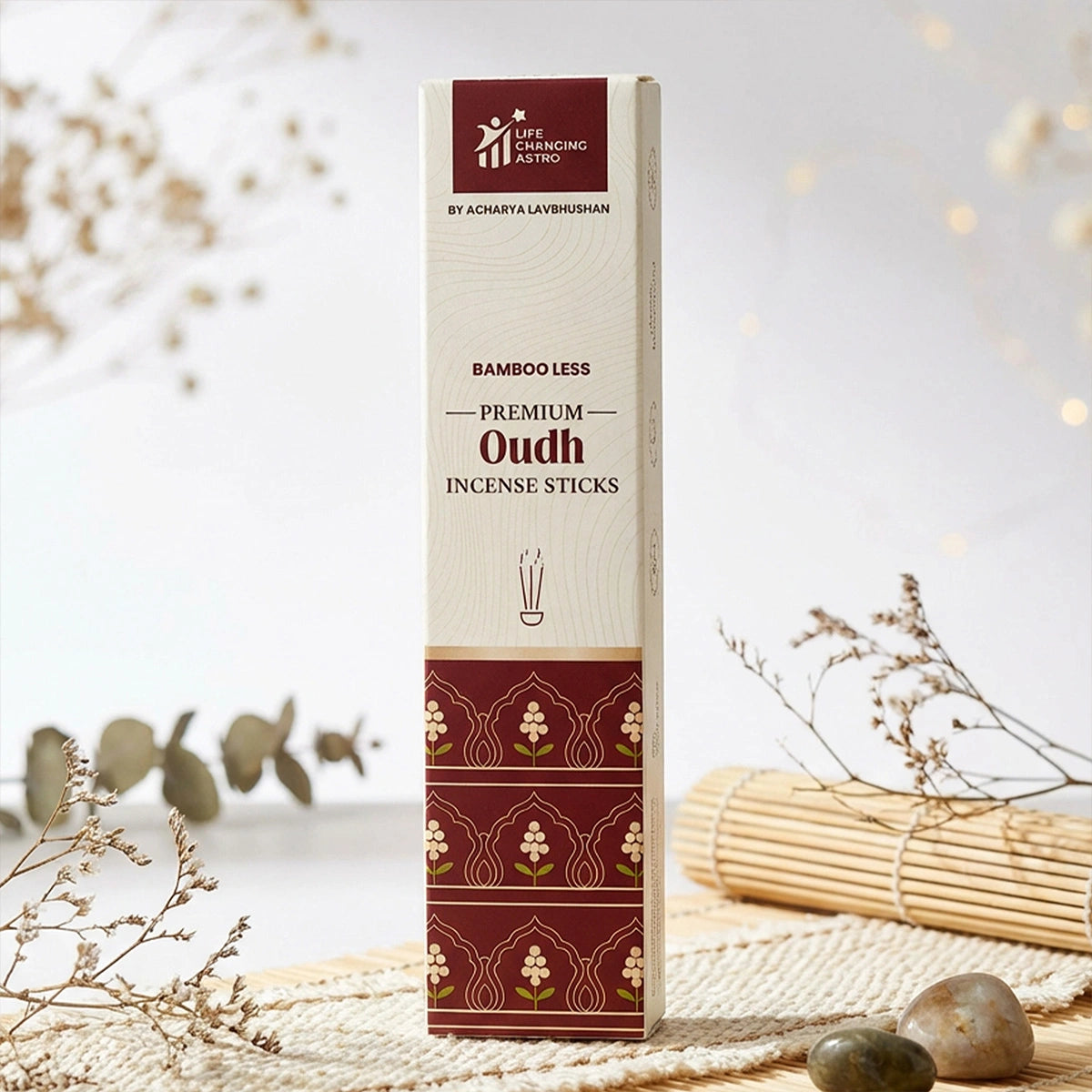 premium oudh incense sticks, oudh agarbatti, organic incense sticks, bamboo less incense, charcoal free agarbatti, cow dung incense sticks, spiritual incense for meditation, grounding fragrance incense, incense by acharya lavbhushan, benefits