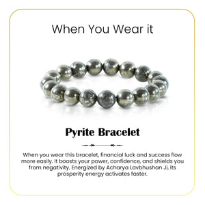The Pyrite Bracelet attracts wealth, success, and protection. It boosts confidence, willpower, and shields against negativity.