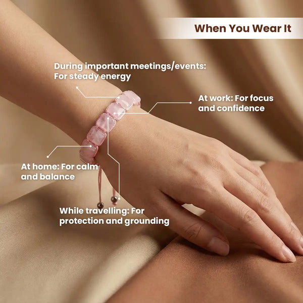The Rose Quartz Bracelet is designed to support love, self-compassion, and emotional balance in everyday life.