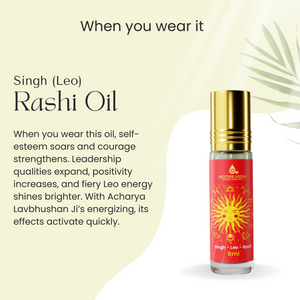 The Singh (Leo) Rashi Oil is designed to enhance courage, confidence, and inner strength, empowering Leo souls to shine in every situation.