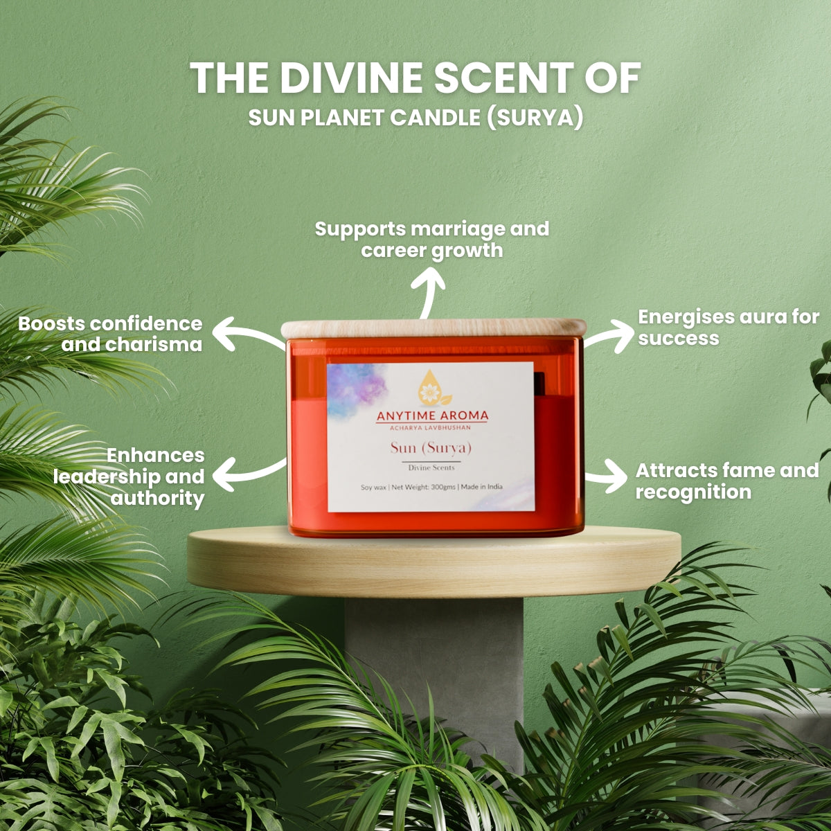 The Sun Planet Candle is a radiant blend of Frankincense and Cedarwood, crafted to awaken your inner strength and charisma. The Sun governs vitality, self-confidence, and recognition—qualities essential for personal and professional success. When burned in the East direction, this candle channels the Sun’s powerful energy into your space, helping you shine in leadership roles, command respect, and attract opportunities. Ideal for those seeking fame, authority, or a boost in personal presence.