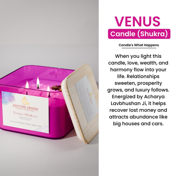 With the luxurious scents of Rose and Geranium, the Venus Planet Candle radiates love, beauty, and abundance. Venus governs relationships, wealth, and material pleasures. Burn it in the South-East direction to attract luxury, improve financial prosperity, and enhance harmony in love life. Perfect for those looking to improve relationships, invite wealth, and enjoy life’s finer comforts.